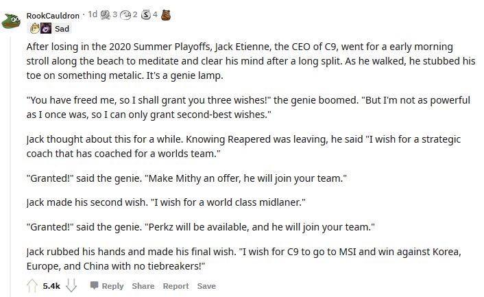 Eine gute Zusammenfassung dieser Achterbahnfahrt aus Sicht eines C9-Fans war dieser Kommentar.