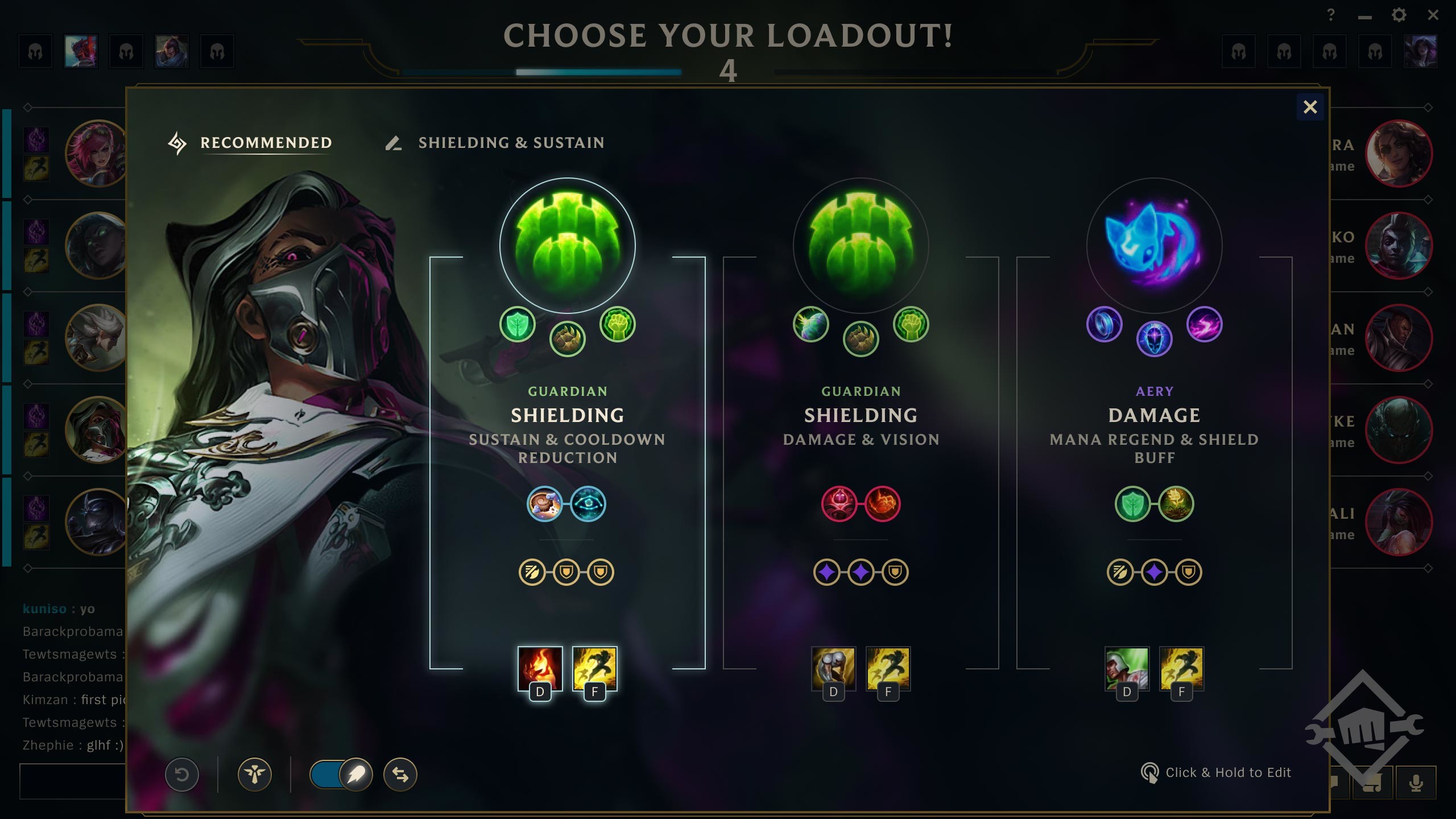 Im Verlauf der Preseason können Spieler:innen sich auf ihren Champion abgestimmte Runenseiten und Beschwörerzauber vorschlagen lassen, die optional nach dem Lock-In in der Draft-Phase angezeigt werden. Dieses Feature umfasst bis zu drei Runenseiten- und Summoner-Spell-Vorschläge, die mit jedem Patch angepasst und optimiert werden. Der Screenshot eines Rioters liefert ein mögliches Layout des Features: