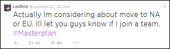 Zu deutsch: Tatsächlich ziehe ich in Betracht, nach NA oder EU zu wechseln. Ich werde euch wissen lassen, wenn ich einem Team beitrete.