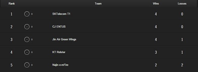 Coach kkOma und Coach Son haben bisher noch kein Set verloren. In der Tabelle stehen beide Mannschaften 4 – 0. Der einzige Unterschied zwischen den beiden ist, dass CJ Entus bisher zwei Spiele mehr innerhalb der einzelnen Bo3s verloren hat. Das nächste Set entscheidet, wer den ersten Platz bekommt und womöglich, wer sich am Ende der regulären Saison den Platz im Finale sichert.
