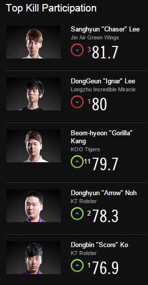 DanDy und KaKAO haben sich 2014 den Thron teilen müssen. Es gab verschiedene Meinungen darüber, wer von den Beiden tatsächlich der Bessere war. Dandy und Cho "Mata" Se-hyeong haben unter dem Samsung-Banner für herausragende Sichtkontrolle gesorgt, wie es ihnen bis heute noch keiner nachtun konnte. KaKAO hingegen war wohl der aggressivste Jungler in Korea. Dies tat er mit einer solchen Finesse, dass KT Arrows immer gut aus der Laning-Phase des Spiels herauskam und durch den frühen Vorteil das Spiel beendete.