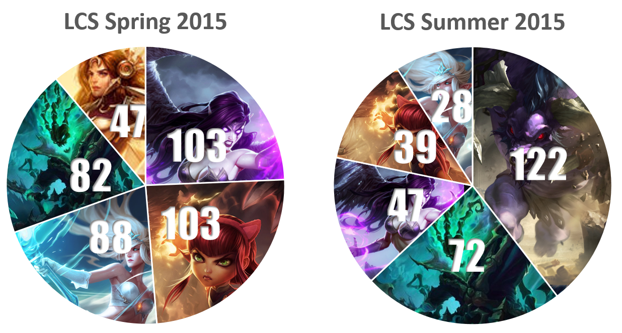 Achtung: Morgana wurde auch gerne in anderen Rollen gespielt.Unter den fünf beliebtesten Supports war der Kettenwächter stets vorhanden. Im vergangenen Spring Split standen Annie und Morgana mit jeweils 103 Picks- oder Bans hoch auf dem Podest. In der gegenwärtigen Sommersaison rutschten sie stark ab, zugunsten des wütenden Minotauren Alistar. Ein Syndrom, das gerne als "flavor of the month" bezeichnet wird. Damit umschreibt man Champions, die außerordentlich beliebt sind, jedoch genau so schnell wieder abfallen, wie sie aufgestiegen sind. Ob Alistar das gleiche Schicksal ereilen wird, bleibt abzuwarten. Fest steht, dass Thresh einen unveränderlichen Parameter im Support-Pool darstellt.