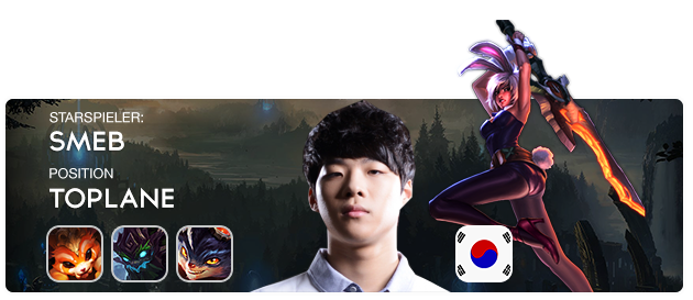 Toplaner Smeb gilt als einer der besten Carry-Toplaner der Welt. In der Vergangenheit wurde er oft dazu gedrängt, Tanks zu spielen, welche Aufgabe er trotzdem gut meisterte. Vorallem ist er aber für seine Riven bekannt. Im Summer Split dieses Jahres erreichte er gegen Jin Air Green Wings einen Pentakill mit ihr und festigte damit seine Position als fantastischer Riven-Spieler.