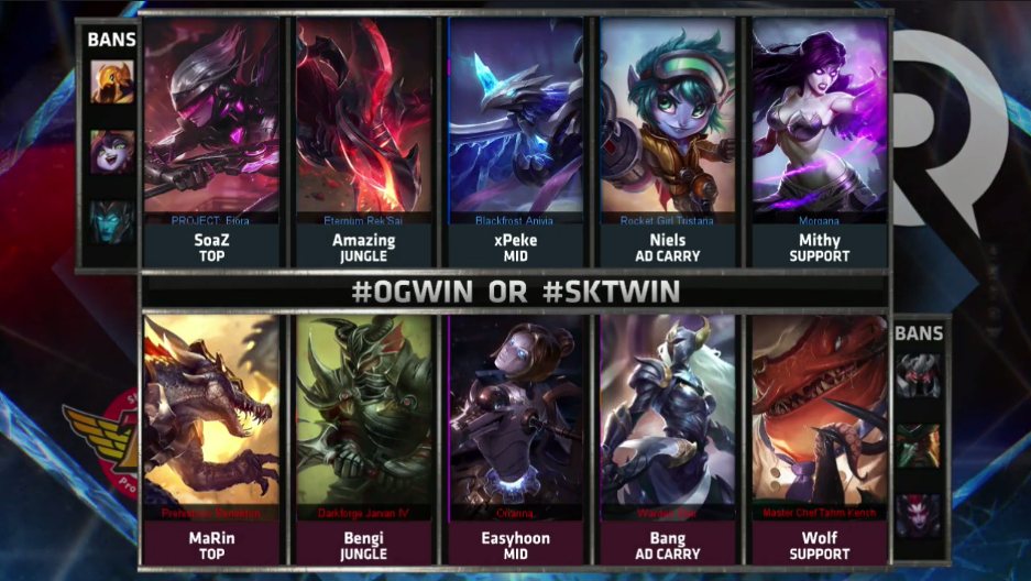 SKT hat sich einmal mehr den Luxus genommen und Ji-hoon 'Easyhoon' Lee in die Startaufstellung gesetzt. Dieser konnte dank dem Vorteil, dass Enrique 'xPeke' Cedeño Martínez keinen Azir spielt, direkt auf seinen Lieblingshelden zurückgreifen.