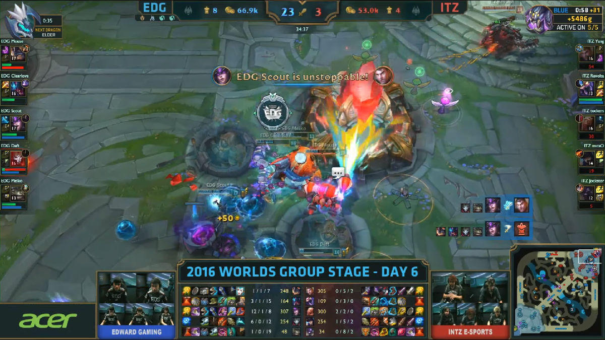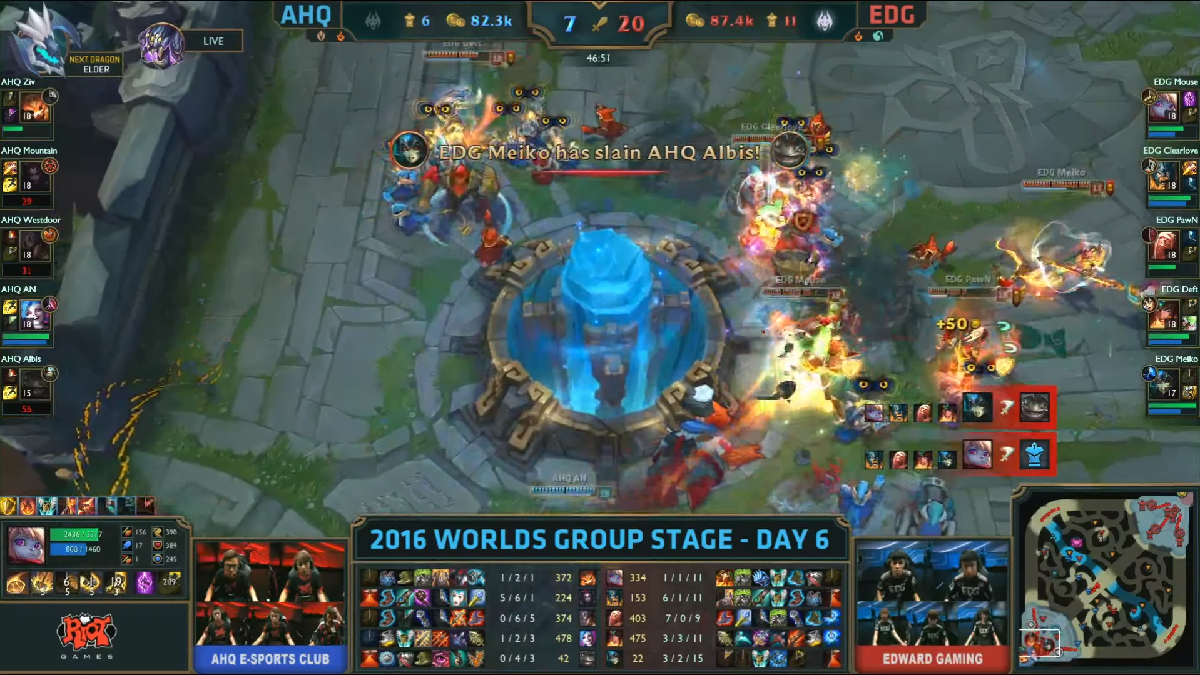 Vor dem Turnier wurde der dominante LPL-Champion als einer der Favoriten auf den Titel gehandelt, doch wie schon im Vorjahr konnte EDG nur selten überzeugen.Nach der Pleite gegen H2k-Gaming ging es für die Chinesen im letzten Spiel gegen ahq e-Sports um den Viertelfinaleinzug. Die Taiwanesen hatten zwischenzeitlich mehrere Tausend Gold Vorsprung, schafften es aber nicht, diesen in einen Sieg umzumünzen. EDG wandte die drohende Niederlage in letzter Sekunde ab und sicherte sich damit einen Platz im Viertelfinale.
