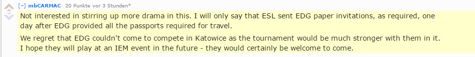 Von diesem Moment an soll sich der Besitzer, eigenen Angaben nach, nicht mehr auf die Exekutive konzentriert haben. Erst am 17. Februar hatte er erfahren, dass sie es nicht zur IEM schaffen würden - der Besitzer hatte nicht mit dem Shitstorm gerechnet.