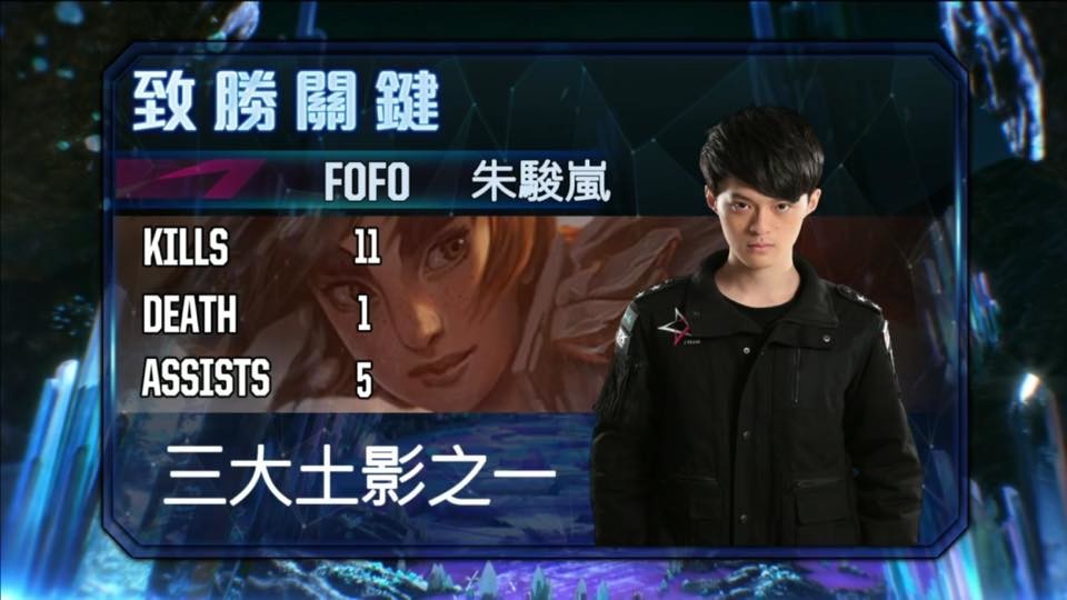 Der taiwanesische Mid-Laner ist seit 2015 ein Teil von J Team, davor Taipei Assassins. 2016 gewann er im Spring Split den Rookie of the Split-Award in der LMS, im Sommer direkt danach den MVP-Titel. In der regulären Saison dieses LMS Summer Splits führte FoFo im Vergleich mit den anderen Spielern auf der Position die meisten Statistiken an.