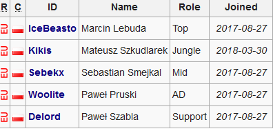 Mit Paweł 'Woolite' Pruski und Kikis verfügt das Team über 2 absolute LCS Veteranen und auch die anderen 3 Spieler verfügen allesamt über Challenger Series-Erfahrung.