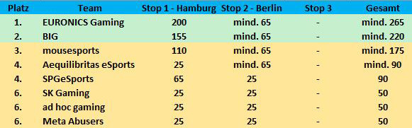 Sollten sich ESG und BIG am 22. Juli durchsetzen, treffen die beiden Teams eine Woche später im Finale des Premier Tour-Stops in Berlin aufeinander. Für Finn-Lukas 'Don Arts' Salomon und seine Mitspieler wäre es eine willkommene Möglichkeit, sich für das 1:3 im Endspiel in der Hansestadt vor acht Tagen zu revanchieren.