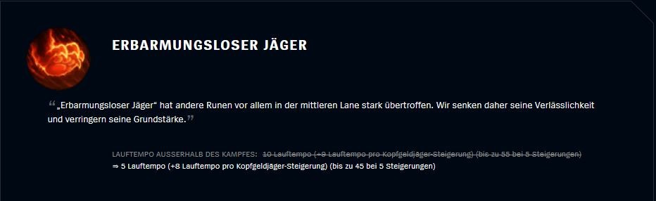Abgesehen davon wird in Patch 10.20 eine Rune abgeschwächt. Relentless Hunter bietet dem Nutzer nach dem Update von Anfang an etwas weniger Lauftempo. Zudem wurde auch der Bonus pro Stack leicht reduziert.